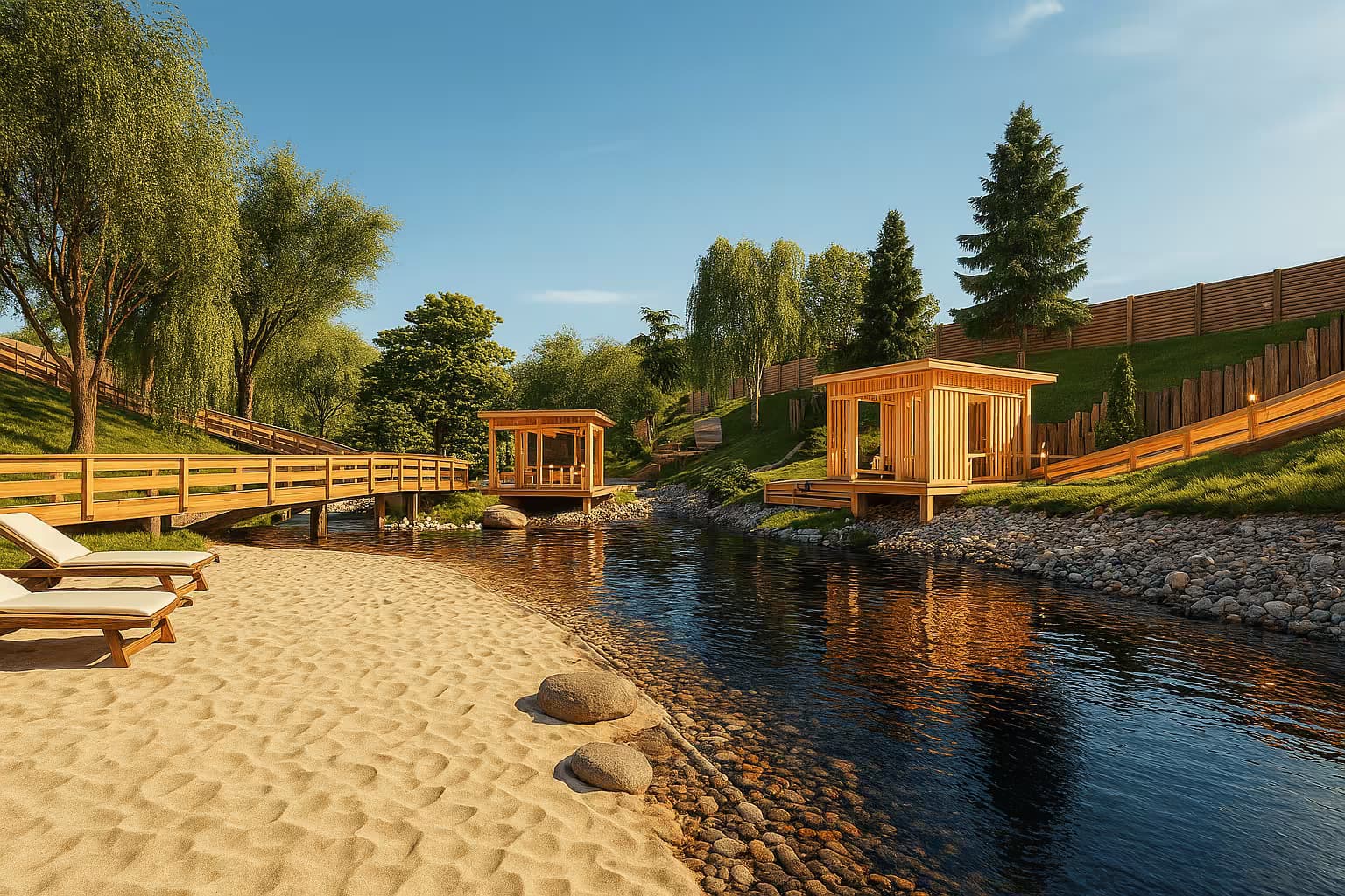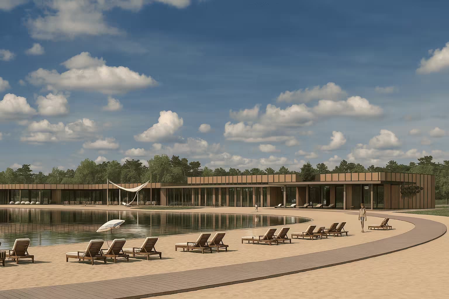 Пространство для энергии и спорта. Более 15 площадок для спортивных активностей, тенниса, футбола, воркаута, а также уникальный канал для сап-бординга и зона у пруда.